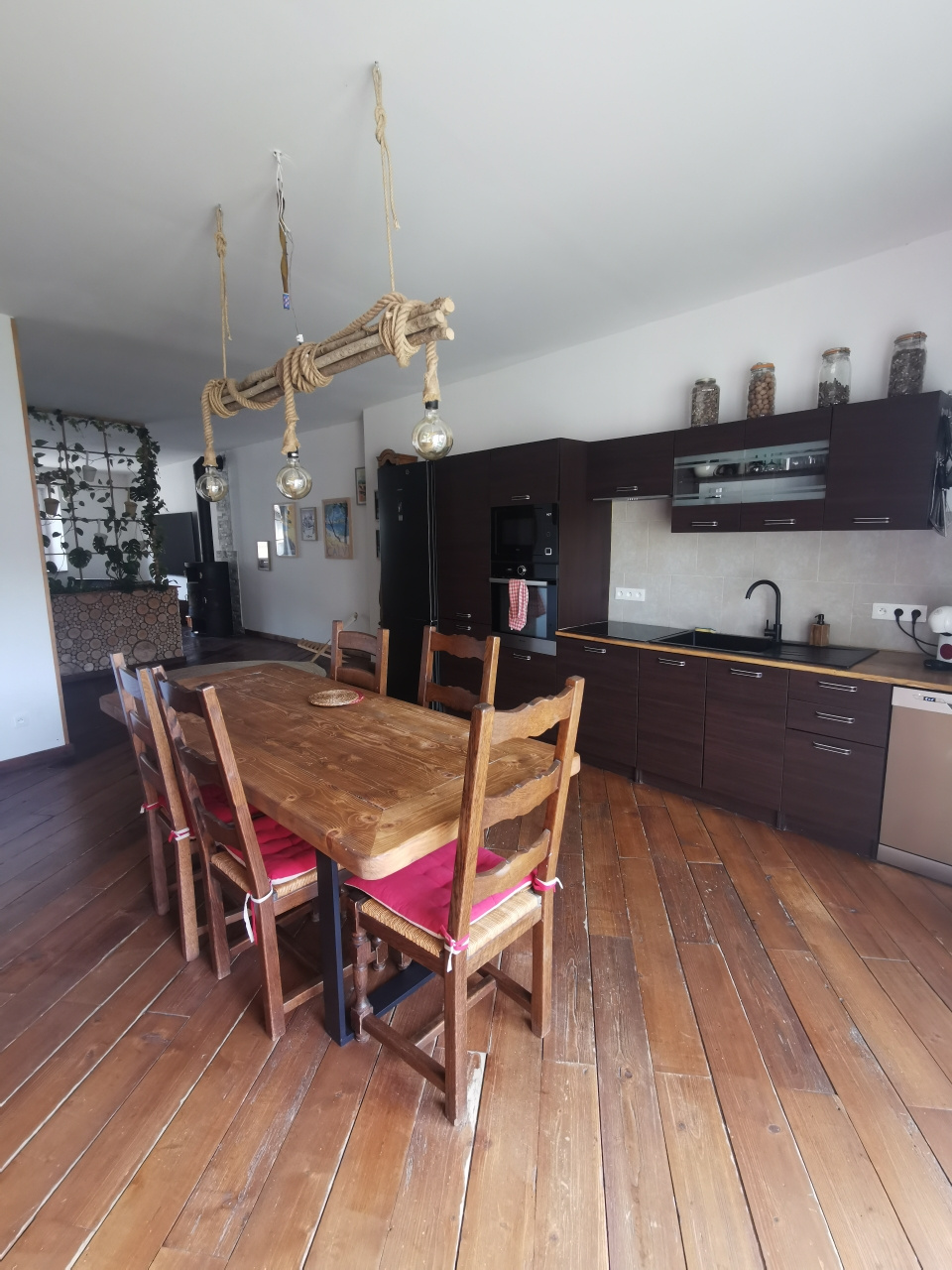 Il se compose d’une grande pièce de vie lumineuse avec cuisine équipée, idéale pour partager des moments conviviaux, agrémentée d’un poêle à bois pour profiter pleinement des soirées d’hiver.